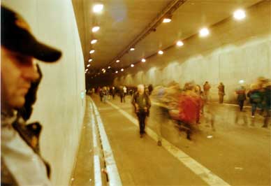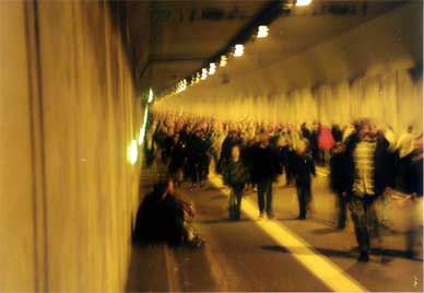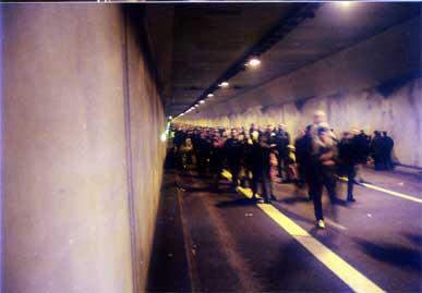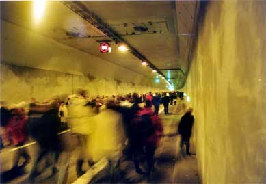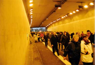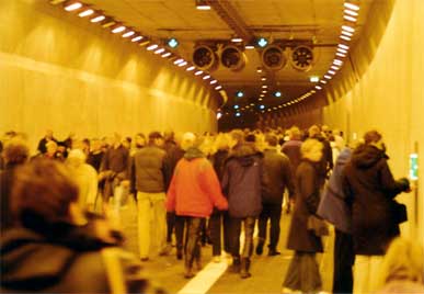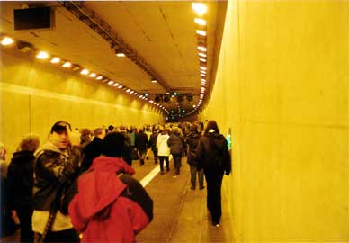 Am 26.10.2002 war im Rahmen der Öffnung, der vom Bohrer Trude (T-ief - R-unter - U-nter - D-ie - E-lbe) gebohrten, vierten Röhre des Hamburger Elbtunnels, ein Tag der offenen Röhre. Also nix wie hin und durch: